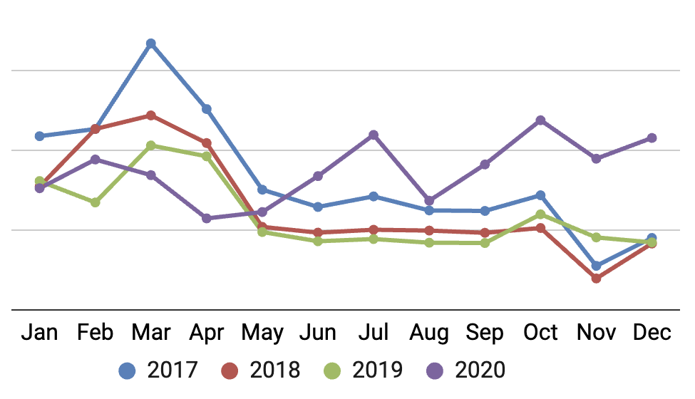 Now, a bad SEO is gonna look at July 2020 and compare it to July 2019 and say, “500% increase from our ongoing efforts!” Then in August 2020 say, “declines are due to seasonality” cus taxes are over (womp whaaa).